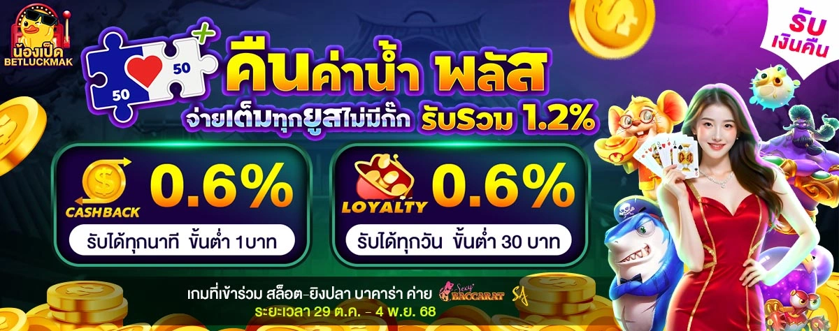 คืนค่าน้ำสล็อต-ยิงปลา-บาคาร่า 1.2 %