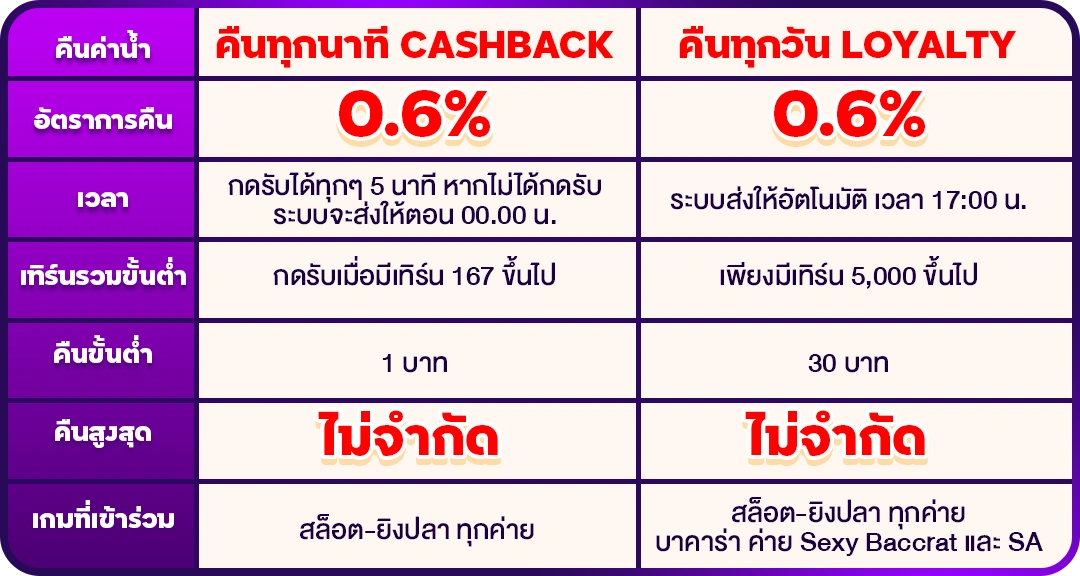 CASHBACK ทุกๆ5นาที  สูง 0.6%