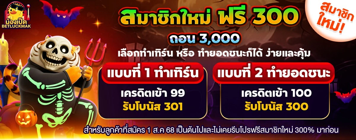 ✅สมาชิกใหม่ ฟรีเพิ่ม 300%