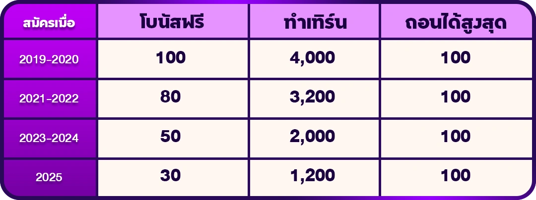 สำหรับสมาชิกเก่าที่เคยฝากเล่นกับเรามาก่อน ยอดฟรีตามปีที่สมัค