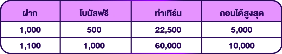 ✅ฝาก 1,000 ฟรีโบนัส 500